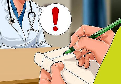 Take notes during the appointment. Oftentimes, a lot of important information can be covered during a doctor's visit, and it may be hard to remember it after the fact. It can be frustrating for both doctors and patients to have important instructions missed for this reason. If you bring a pen and paper to your appointment and write down important instructions, it can help to maximize the benefit you obtain from the visit, as well as allowing your physician to feel effective and valued in their advice and recommendations. You can bring a family member to your appointment to take notes for you, if this helps. It may be especially helpful to bring a family member if the appointment is discussing an emotional issue, such as relaying a challenging diagnosis, or planning treatment for a condition such as cancer. When your emotions are heightened, it can be much more challenging to remember details after the fact; for this reason, having a family member or a friend present can help.