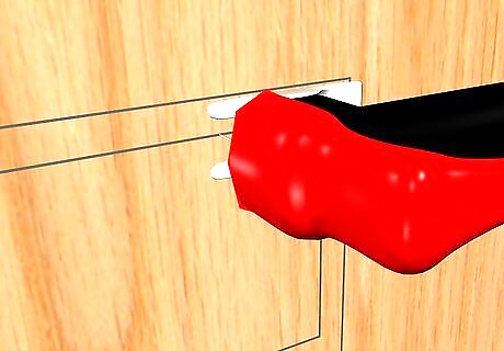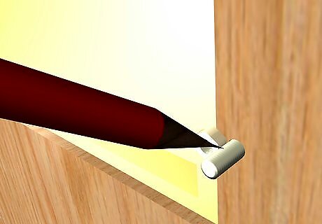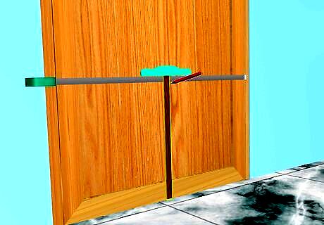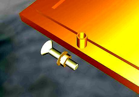 Trim the bolts if necessary. The bolts should protrude out of the door only far enough so that the nuts can be securely screwed onto them. If they protrude farther, trim them. Mark where to cut. Press the nut flat against the door next to the bolt. Use a pencil to mark the depth of the nut on the bolt. Do this for each bolt. Use a small hacksaw to cut through the bolt at the mark.