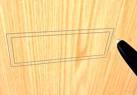 Mark the inner flap measurements on the door. Mark the measurements with a pencil inside the larger outline of the slot. Connect the dots with pencil lines using a ruler.