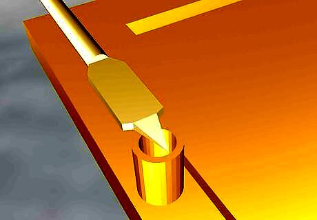 Drill lug holes. Fit your drill with a flat (paddle) bit that is about the same size as the lugs on the mail slot. Position this bit at the center of each hole you made in the last step, and drill only halfway through the door. It's important to keep your hole level, so drill slowly and carefully.