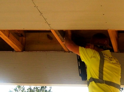 Prime and paint the soffit or ceiling according to manufacturer's recommendations.