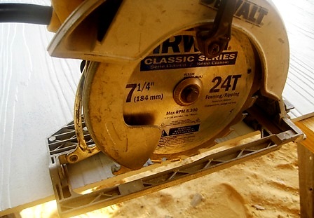 Cut the board to the required width and length. There are several methods used for cutting cement board: Circular saws. Special saw blades are available for cutting cement board, but carbide toothed circular saw blades will give satisfactory cuts if the amount of cutting is not excessive. Avoid breathing the dust produced by sawing, either by using a fan or wearing a NIOSH approved respirator. Pneumatic or electric sheers can be used for thin boards, but are expensive and usually only practical for a professional installer. Scoring and snapping. Using a straightedge and scoring the board with a sharp utility knife, then bending it (similar to cutting gypsum wallboard products) is a technique that can be used––it produces very little dust, but is less precise and doesn't give a smooth, flat cut.