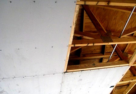 Fit each subsequent sheet or panel into place until the area your are working in is complete. Install trim and caulk joints as needed, clean up surfaces where blemishes or spoiling from screw penetrations has occurred.