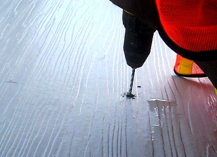 Pre-drill holes for fasteners if desired. Screws can be driven through the board without pilot holes, however, if a certain spacing is required, laying out the screw locations and drilling pilot holes will make meeting this requirement simpler, and will make starting the screws easier.