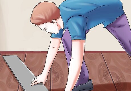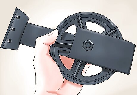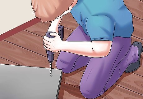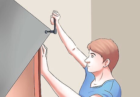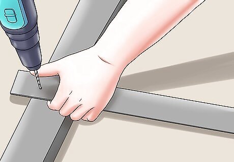 Use joint brackets to attach sections of track as needed. The tracks should be exactly as long as the section along which you wish the door to slide. If installing two sliding doors, remember that the tracks should be twice as wide as each door so that you can slide two doors together on one track. If only installing one door, the track need only be as wide as the door, but keep in mind that you will want the track to be about twice the length of the door so that you can open it completely. They should occur every 6 inches (or 15 cm) or so, and should be located in the middle of the track. If you are attaching the track to softer or weaker material, measure more holes.