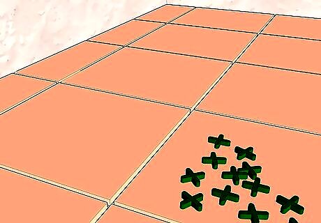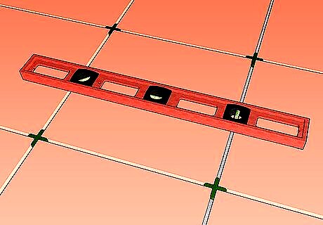 Level the tiles as you go. Use a carpenter's level as you go to make sure that the tiles are level.