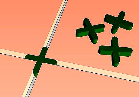 Insert the spacers as you go. Place tile spaces between each tile as you go, or simply use your eyes to estimate if using tile sheets. These spacers are usually places at the corners of each tile and look like the cross shape that is formed by four tiles being next to each other.