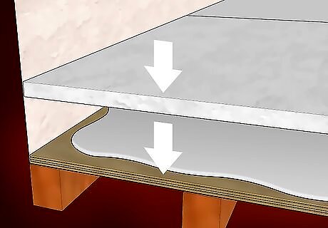Check for level as you go. Use a carpenter's level to check that the cement board is flat in all directions. You should also continue to check for level as you go through the various layers of the tiling project. If the cement board is not level, you can adjust it with shims from below.