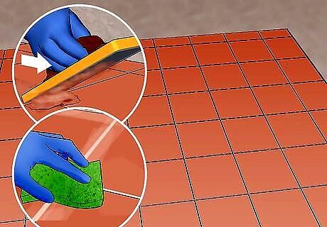 Clean the grout. Using a damp sponge, gently wipe down the tiles and grout lines to remove the excess. Clean just a small area, rinse, wring, and start again. You want to keep the sponge as clean and dry as possible.