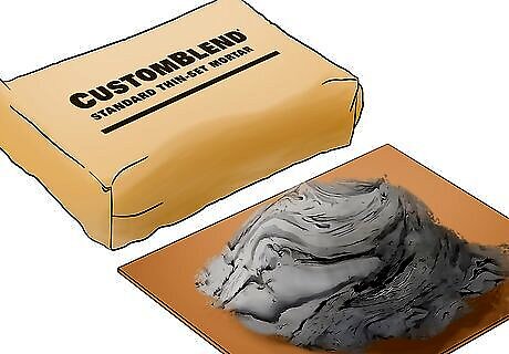Prepare your mortar. Mix up some thin set mortar according to the manufacturer's instructions for the brand you buy. Generally, you'll have a powder to which you add water. You want the texture of the mortar to be like that of peanut butter. Add the water in slowly and mix as you go, so that you don't get too much water in the mix. You'll also want to let it "slake" or rest after you do the initial mixing. Let it sit for 10-15 minutes and then mix it up again. It's now ready to use.