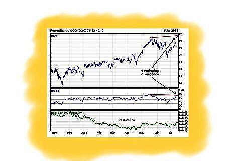 Find support for prediction. This can be based off of informational analysis, like using charts and graphs provided by your broker, or on your analysis of market events (company profit reports, investor confidence, world events). If you are using graphical analysis, draw your support or resistance lines using your charting software. Use indicators (MACD, RSI, Stochastic, etc) to determine stock direction. In this example, the stock is headed lower due to a crossing in stochastics and a double top pattern.