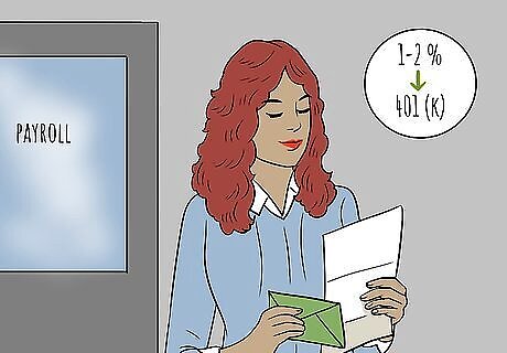 Increase your contribution when you get a pay raise. Each time you get a pay raise, distribute half of that amount to pay and the other half to your 401(k) contributions. That way your investments are increasing but you won't miss the money. For example, suppose you were contributing 2 percent of your salary to your 401(k), and you just got a 2 percent pay raise. You could increase your investment to 3 percent. If your employer matches up to 6 percent, you've maxed out your employer's matching.