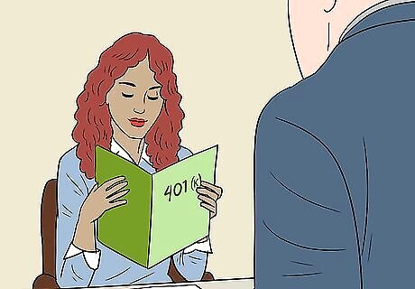 Find out if your employer has a 401(k) plan. While you probably got information about your employer's retirement plan during orientation, that information may have gotten lost in the shuffle as you adjusted to your new position. Additionally, most employers require you to work with them for at least 60 or 90 days before you become eligible to participate in any retirement plan. You can check through your orientation materials or employee handbook if you have one. If not, ask your manager or someone in human resources. They should be able to give you more information.