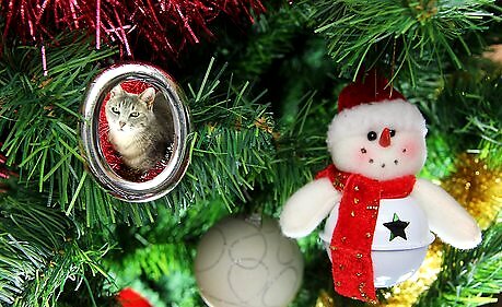 Cut out previous photos of your pet and make a collage. You can add Christmas-themed stickers to the edges. Adding snowflakes to the collage can help create a more “wintery” mood, while adding stars and swirls can make it useable for other times of the year as well. Put this next to other Christmas decorations to add to the festive environment.