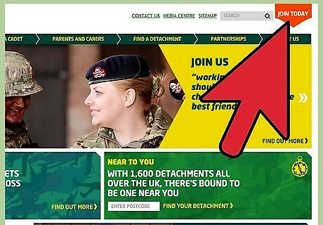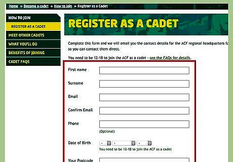 Let the ACF know you want to join. Click the red "Join Today" button on the top right of the homepage, the "Become a Cadet" tab along the top of the homepage, or any similar links found throughout the main ACF and individual detachment websites. Provide your name, contact information, date of birth, and postcode, and wait to be contacted about joining.