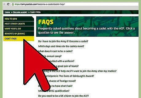 Determine if you meet the criteria. Information is available on the website. Cadets must be between the ages of 12 and 18. Girls have been welcome to join the ACF since 1982. There is no UK citizenship requirement. Browse the "Cadet FAQs" page for answers to several common queries.