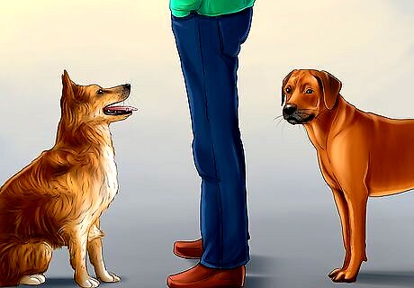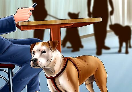 Block physical contact between your dog and other dogs. This will be important if the waiting room is small and/or already full with other dogs and dog owners. To block contact, try to keep part of your body between your dog and another dog. If this is not possible, it may be better to wait outside or stand away from the other dogs.