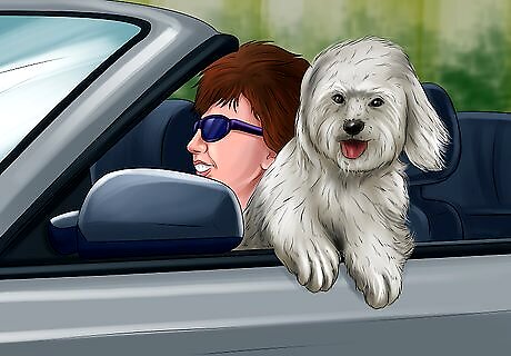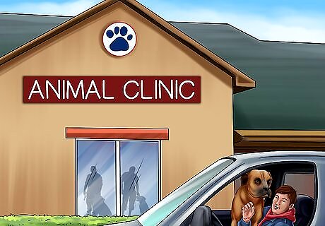 Get your dog comfortable with car travel. A car ride can be an anxious time for your dog, especially if your dog associates car rides with only vet visits. To help your dog feel less anxious in the car, go for car rides for other activities, like running errands or going to the dog park. When your dog starts enjoying car rides, the rides to the vet's office won't be so anxiety-inducing for your dog. If your dog gets sick or anxious in the car, talk to your vet. Medications are available to reduce anxiety and prevent car sickness in dogs. Transporting your dog in a crate could make car rides easier and calmer for your dog. Put your dog’s favorite blanket and toys in the crate to keep your dog busy and calm during the ride.