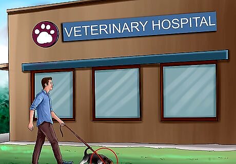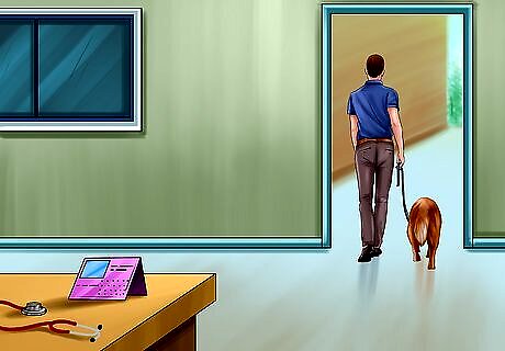 Wait with your dog outside. Some dog diseases, such as canine distemper, can be spread when a dog coughs infected particles into the air. If your dog is coughing, it may be best to wait with your dog outside until it is time for the appointment. This will help prevent the spread of disease from your dog to other dogs. Other highly contagious diseases in dogs are the canine flu and parvovirus. Canine flu is spread through respiratory secretions (coughs, sneezes) and contaminated surfaces. Parvovirus can be spread through direct contact with an infected dog and contaminated feces. If your dog is seriously ill, the receptionist may suggest that you wait with your dog outside to prevent the possible spread of disease.
