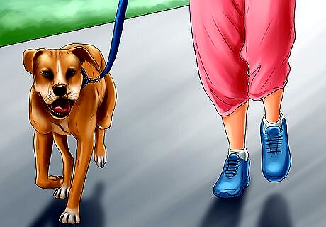 Take your dog for a walk. If your dog gets anxious before vet visits, take it for a walk, either before leaving home or once you arrive at the vet’s office. A walk will help your dog release some nervous energy and be more calm. If you choose to wait outside before your appointment, use this time to walk your dog.
