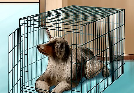 Carry your small dog or puppy in a crate. Holding your dog in your arms is not recommended, since it could bite or scratch you if it becomes agitated. If your dog is small, keep it in a crate until you are in the exam room. This will keep your dog safe from other dogs. In addition, staying in the crate will help shield your dog from diseases that other dogs may have.