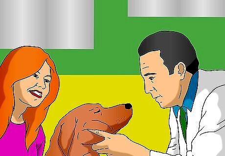 Take your dog to the vet regularly. Consult your veterinarian before starting a hard-core exercise regime, and start sensible. Humans who do crazy work-outs after months of inactivity can end up with stress fractures and pulled muscles, and the same is true for dogs. Make sure your pet doesn't have any musculoskeletal problems like joint dysplasia that might be worsened by heavy running, and stick to low-impact activities like walking or swimming for animals if needed. Make sure all pets are up to date on vaccinations and treatments for other medical conditions.