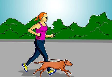 Exercise with your dog. Human exercises, such as jogging, or other outdoor activities can be great opportunities to bond with your animal and to get a workout at the same time. If you regularly workout in the great outdoors, take your dog with you. If you're just going for a long walk after work to cool down, bring the dog along with you.
