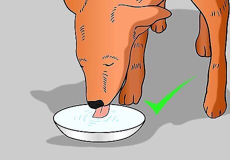 Provide plenty of clean water every day. Dogs need access to clean drinking water at all times, and will drink nearly as much as you do in a given day, up to eight cups, or one ounce per pound of body weight. If your dog doesn't drink as much as you think it should, change the water more regularly, or think about providing a water "fountain" which will bubble constantly. If the dog bowl looks gross and dirty to you, it probably looks gross and dirty to the dog as well.