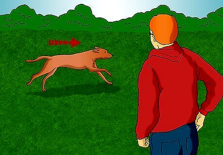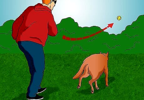 Just let your dog run. The single best way to get a dog some exercise? Just let it run around. Whether it's running free or chasing a stick, giving your dog some off-leash freedom to run at top speed is the best and easiest way to keep your pet healthy and in shape. Find a dog park in your area to give your dog some space, and let your pet play with other dogs to socialize. If you don't live near a dog park you can always go to a regular public park where dogs are allowed, or a playground. Be certain to check and obey local leash laws or other possible regulations.