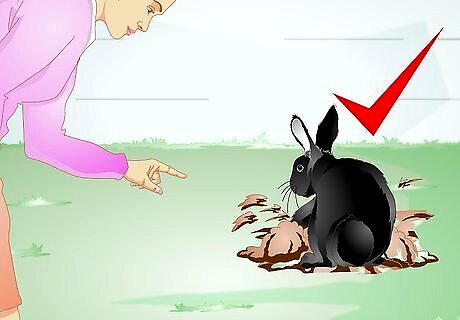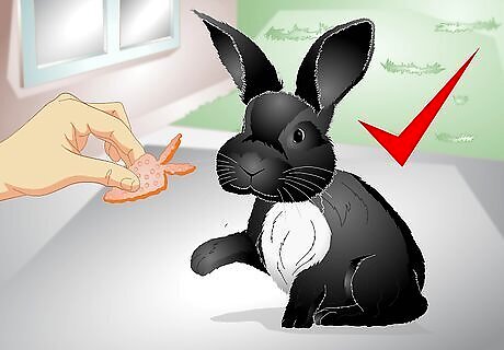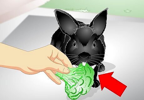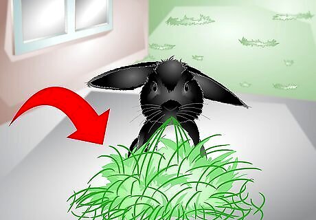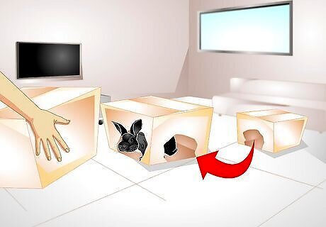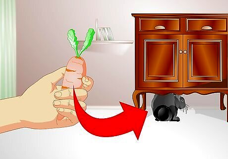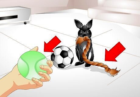 Give your rabbit something to explore. Rabbits have a strong sense of curiosity. Foster this curiosity by giving him something new to investigate. If you are playing with your rabbit inside, rearrange the furniture in the play area. Also, consider hiding tasty food slices throughout the area so he can use his nose to sniff around and find the food.