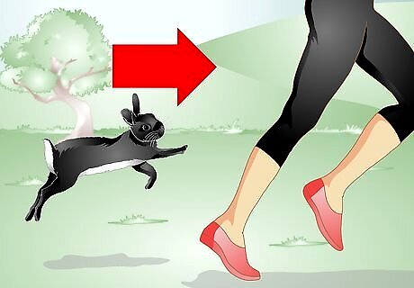 Let your rabbit chase you. Rabbits also enjoy running, so allow your rabbit to chase you. Give him something to chase, such as a towel or a favorite toy that is attached to a plastic wand. It is important that he chases you —if you chase him, he will think you're a predator.