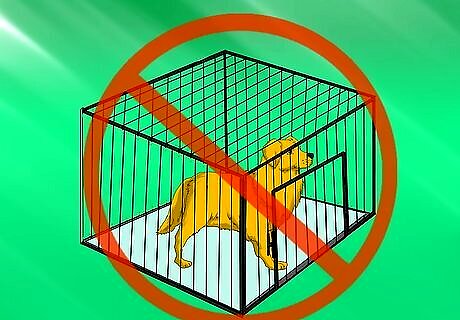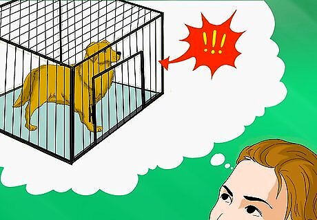 Don't leave the dog in the crate for extended period of time. Crates are ok for dogs to sleep in at night and to stay in for a little while during the day, but it's not a longterm solution to caring for your animal. No dog should be left in the crate during the day for more than four hours at a time without exercise and potty breaks. Water should be available at all times and dogs that are new to crates should be supervised until they get used to being in left in the crate alone. If your dog is barking, whining, drooling, panting, restless, standing or turning around continuously, or pawing at the door to get out, do not force the dog to stay inside.