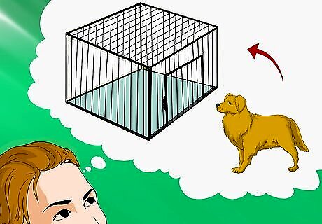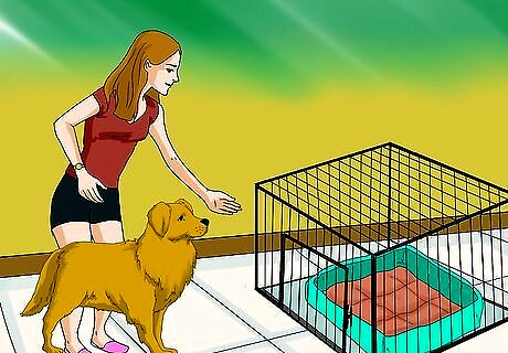 Make sure you have the right type of crate. Wire crates are usually a good choice for most dogs. Make sure the dog can stand up completely and put his head up completely in the crate that you've chosen. Make sure the crate is large enough for the dog to turn around and lie down in easily. A good rule of thumb is to read the recommended size on the box the crate comes in and then get one size larger to account for growth and to provide for the comfort of your pet.