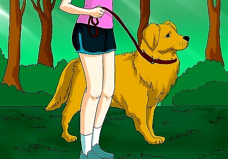 Walk the dog before kennel training. The best time to train an older dog is after a little bit of exercise, when it's been worn out a little. It's also good to give the animal an opportunity to do its business in the outdoors, before being locked in the kennel for any amount of time. Even if it's going to be a brief intro at first, it's important to establish a routine. Keep in mind that old dogs might have difficulty holding in their waste over longer periods. An animal with full bowel control will usually avoid making a mess in their cage and don't want to sleep in their poop any more than you do.