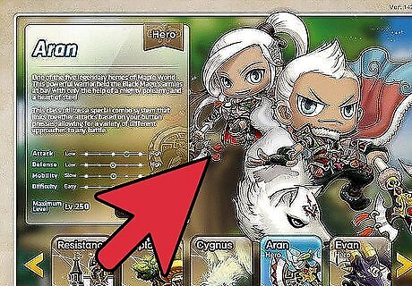 Ride with an Aran. They are a class which use mobbing skills. Unlike other Warriors and Dawn Warriors, they use pole arms. In their first job, they have a movement skill called Combat Step. Arans have a good knock-back and in their 4th job, they get a skill that can reduce their damage from monsters. However, for most skills, they require a huge combo. They also have wolf mounts starting at level 50, growing in size and awesomeness until level 200.