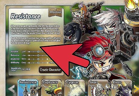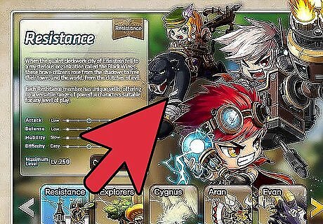 Join the Resistance. The Resistance are Magicians, Bowmen, and Pirates (Gunslingers) with a twist. Resistance Members have a skill that combines Dark Sight with Nimble Feet. They also have a skill that gives potions up to 30% more HP and MP. Battle Mages use staffs and use physical attacks with magic to attack monsters. They can teleport in their first jobs and have a skill that increases the attack of their party members. They have a skill similar to the Magician's Genesis, Blizzard, and Meteor called Dark Genesis. Wild Hunters are bowmen who use crossbows and ride a jaguar while attacking. Wild Hunters have a skill that can capture and summon monsters which can be used to help fight monsters. In their 3rd job, they can blind and trap monsters. They can also remove the need to use bolts in exchange for MP. Wild Hunters obtain a colored Jaguar mount starting at Lv. 10. (Red, Blue, Black, Purple, Beige, etc.) Mechanics ride a machine and use guns (not shown) to attack monsters. They have mobbing skills in 1st job, which can be useful for leveling up. Unlike Wild Hunters, the Mechanic's machines aren't fast, but they have a skill that is similar to the Aran's Combat Step skill.