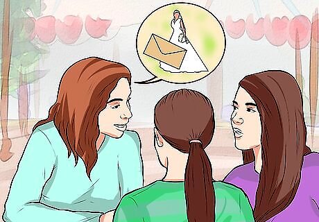Check the wedding invite list. The first thing to do when planning a bridal shower is to consult the official guest list for the wedding. One of the biggest faux pas people make when planning a bridal shower is inviting people who are not already invited to the wedding. Showers generally consist of people getting excited for the wedding, so inviting people to the shower and not the wedding will make them feel both excluded and uncomfortable. Showers are also centered around receiving and opening gifts, so inviting guests who are not invited to the wedding sometimes comes off as a gift grab.