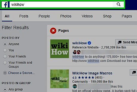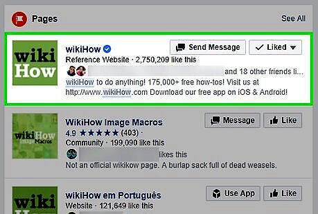 Search for the page you want to like. To find it, click the search box at the top of the screen, type the name of the Page, then click the magnifying glass. A list of results will appear.