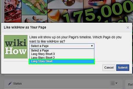 This wikiHow teaches you how to like a business, organization, or public figure's Facebook Page as your Page (instead of your personal account).