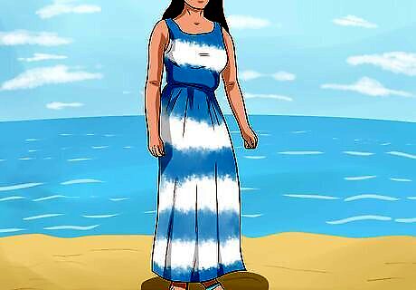 Try a loose printed maxi dress for a comfortable style. A flowing, patterned maxi dress is a popular choice for women to stay cool and look stylish in the summer. Try a floral print, polka dots, or stripes in your favorite bright colors to look cute at any dressy or casual event. Keep this look casual by choosing a cotton dress with a bold pattern and wearing flat sandals or canvas sneakers with your dress. You can make this outfit dressier by choosing a dress that’s made from silkier materials and is in a solid color. Add heeled sandals or ballet flats and some jewelry to finish off the look.