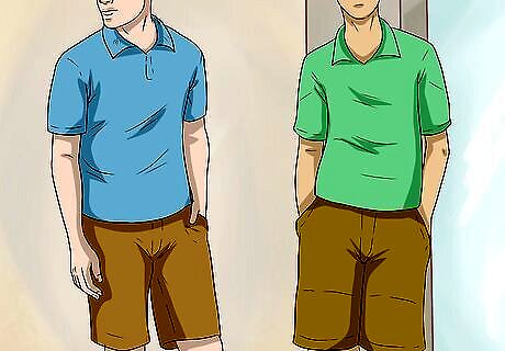 Find polo shirts that fit well. Aim to find a polo with sleeves that fall halfway to three-quarters down your bicep and aren’t baggy or tight. Your sleeve seam should fall right at the edge of your shoulder, and the body of the shirt should be slim against you but not tight. Wear an untucked polo with cargo or denim shorts for a cute casual summer look. To dress up your polo, wear it with dress pants or a skirt and loafers or dressy sandals.