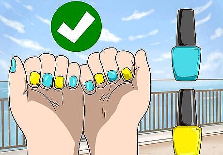 Get a summer manicure. Head to your favorite nail salon and ask for summer nails in bright neon colors or elegant pastels. Or if you’re feeling more adventurous, ask your artist to give you a floral print, rainbow nails, a fruit pattern, ice cream drips, or a holographic manicure. Ask your artist about summer designs they can do or search online for images to bring to your artist as inspiration.