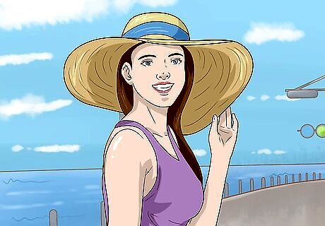 Keep the sun off your face with a cute wide-brimmed hat. Lightweight summer hats with wide brims come in a variety of styles and colors. Try a light tan or black one to go with any summer outfit or to wear at the beach.
