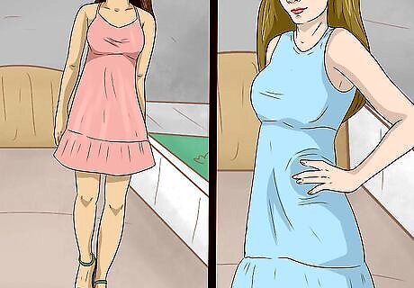 Pick a babydoll dress as an extra feminine choice. Babydoll dresses are short with either spaghetti straps or short sleeves and are made of thin fabric with an empire waistband. Their lightness makes them a perfect summer choice, and they look cute worn over a lacy bralette and sandals, flats, or heels. These dresses can be either dressy or casual; wear them with heels and jewelry for a dressy occasion, or a pair of flat sandals or canvas sneakers for a more casual event.