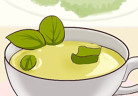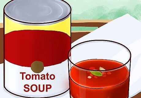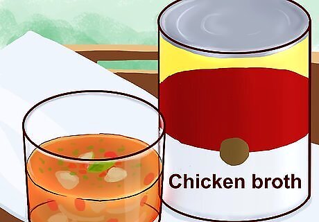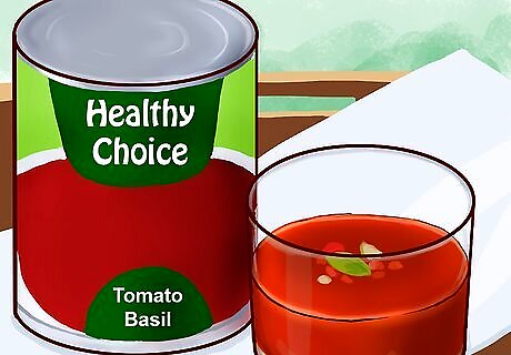 Drink a lot of water to stay hydrated. Many cabbage soup diets don't allow for any other beverages outside of sugar-free, decaffeinated liquids. To get all the fluids you need, drink water with your meals. Some variants of the diet will also allow you to drink skim milk or unsweetened fruit juice. Most health professionals recommend that you drink about 8 glasses of water daily. Stick to allowed beverages during your diet. If you get sick of water, you may be able to drink unsweetened decaf tea and coffee, 100% cranberry juice, or 100% tomato juice.