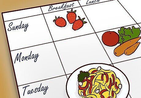 Write up a meal plan. Writing up a specific weekly meal plan can help you stick to your diet and get the weight loss results you want. Once you know which diet you’re going to follow, jot down notes for an entire week of meals. Include breakfast, lunch, dinner, snacks, and drinks. Choose a specific diet to follow first. This will help you figure out what to include or what to leave out of your meal plan. It may also be helpful to write up a corresponding grocery list to help you stay on target at the store.