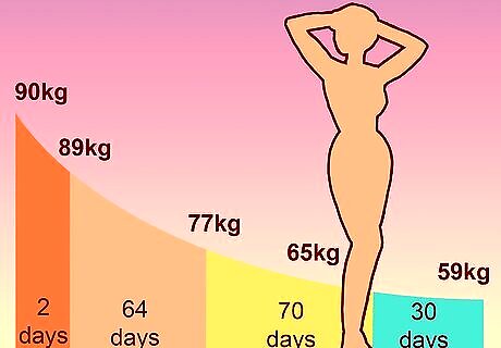 Set reasonable goals. With any weight loss plan, it's helpful to set goals for yourself. These short-term and long-term plans can help keep you motivated throughout your weight loss journey. Your doctor or dietitian can help you set realistic, attainable goals for yourself based on factors like your current weight, overall health, and dietary needs. Try to make your goals reasonable. Losing large quantities of weight very quickly is probably not reasonable. Also make sure you're being realistic about how long you can follow your diet and exercise plan. If you have one long-term goal (like a larger weight loss amount), set smaller, more short-term goals leading up to it.