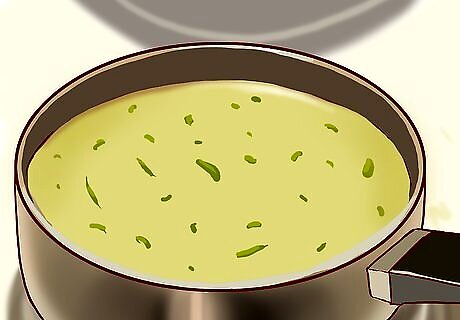 Choose broth-based soups. When you're in the grocery store, you'll see a variety of canned soups. Stick to clear or broth-based soups for your diet, rather than heavier, creamy soups. Broth-based soups typically are also lower in calories and fat than other types of soup. Try to steer clear of creamy soups, bisques, or chowders. These may be higher in saturated fat and calories due to the cream or butter that's used in the cooking process. As a tasty alternative, try a creamed cauliflower soup to get the texture you crave without the fat.