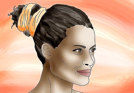 Wrap your hair in a scarf or a hair cover. You can prevent your hair from getting too wet and frizzy during your workout by wrapping it in a scarf. You may use a cotton scarf to ensure your hair can breath without getting too wet. You can also try using a hair cover designed to protect your hair when you work out. You may look for a hair cover that is designed for use at the gym online or at specialty Black hair stores. These hair covers are often designed to repel moisture and release heat so your hair does not get too wet or frizzy while you exercise.