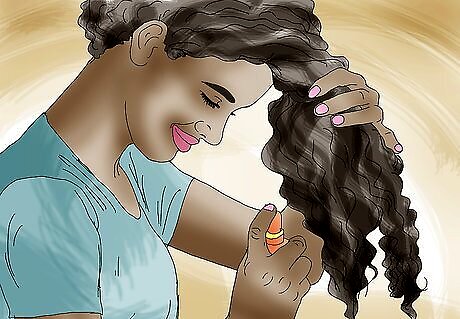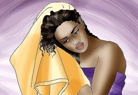 Let it dry completely. Always let your hair dry completely before you style it. Let your hair air dry or dry it with a towel. You may also apply leave-in conditioner in your hair to keep the frizz under control. Try to avoid using a blow dryer to dry your hair, as the heat can damage it. If you do use a blow dryer, make sure you use heat protectant spray or gel on your hair before you dry it.